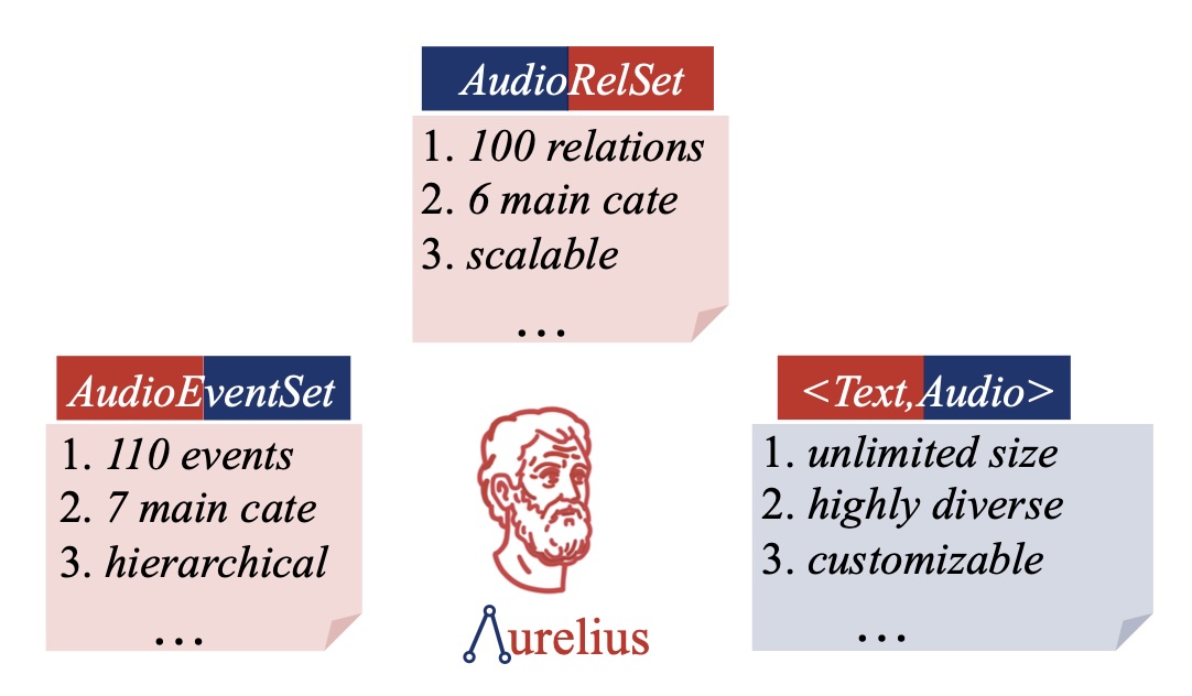 We introduce Aurelius framework, which contains AudioEventSet - a 110 classes audio event corpus across 7 major classes, AudioRelSet - a 100 classes relation corpus across 6 major classes, and a novel <text,audio> pair creation strategy.